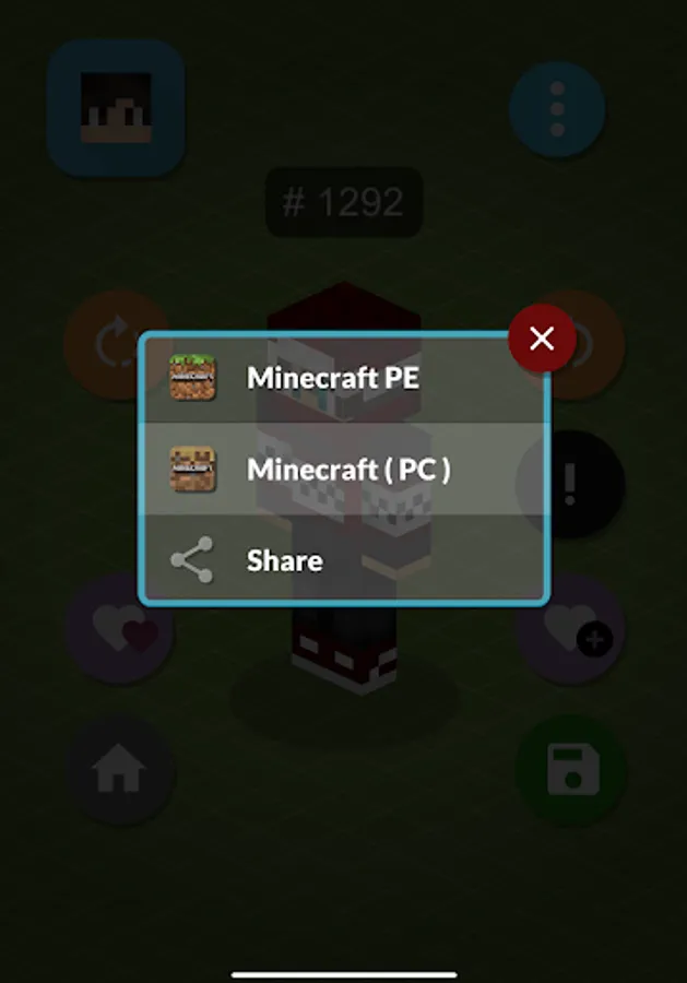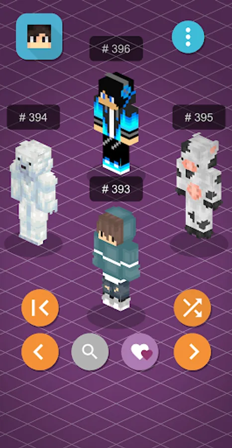 All Minecraft skins are shown in 3D. You can rotate them in 360 degrees. With just one tap you can export it to MCPE, Minecraft PC, Gallery, or share with your friends.