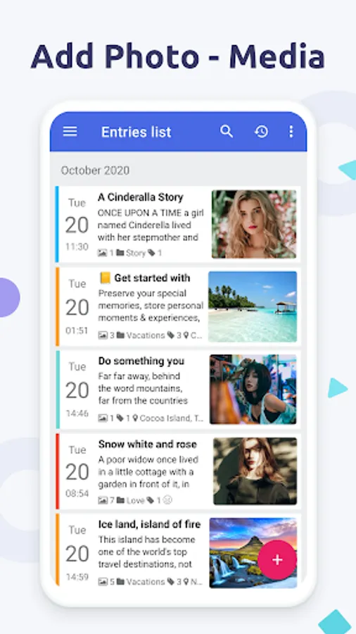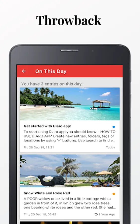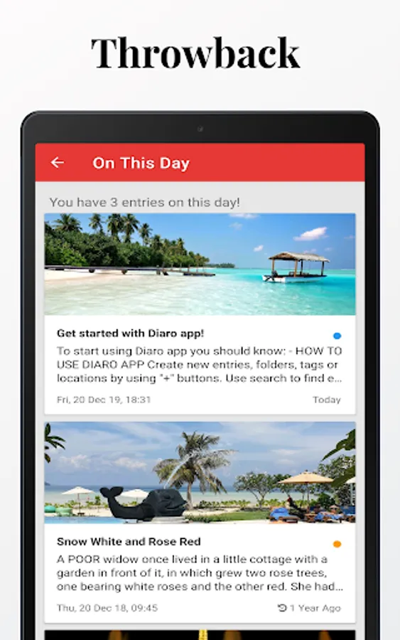 It helps you organise your daily journal entries, notes from the past in the easiest way. Preserve your special memories, store personal moments & memories or keep track of your life with help of Diaro 🎉🎊🥳.
