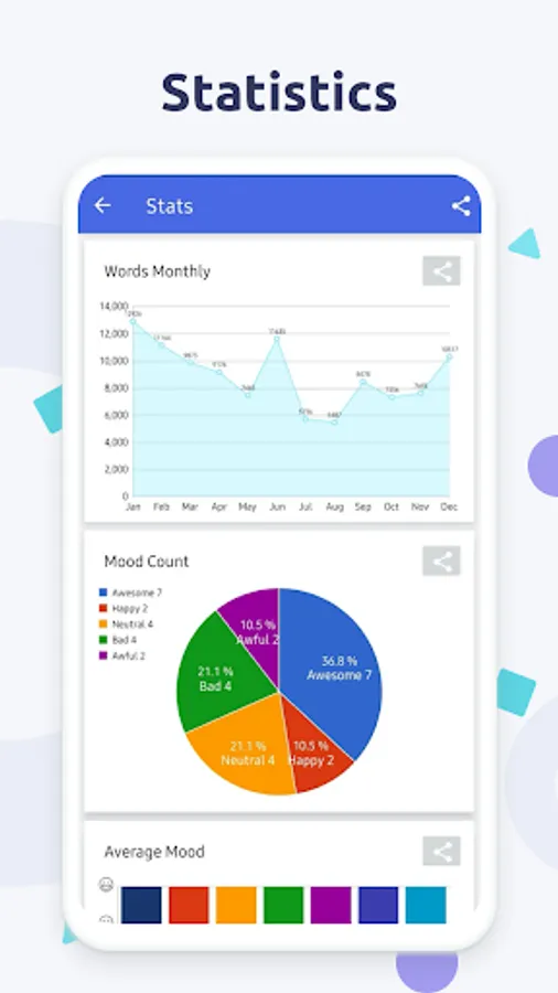 Detailed interesting statistics about your diary entries & mood