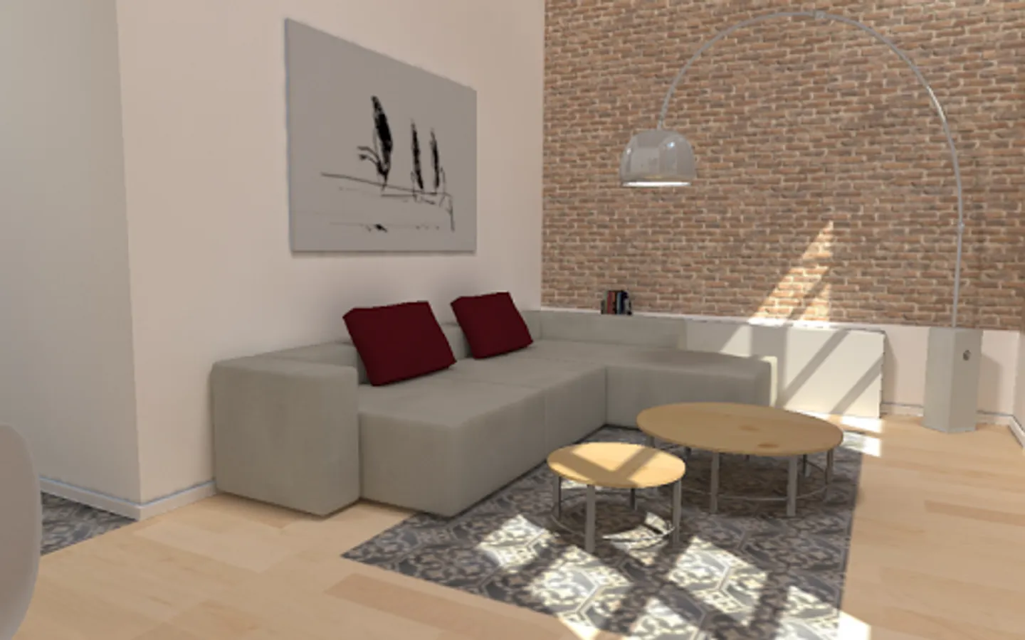 Application of virtual / augmented reality in which you can see the interior decoration of a starter home.