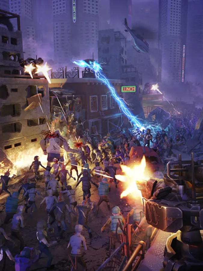 "There was another dark war, another bloody apocalypse! Survivors in the neon city of Las Vegas stood up against the waves of undead. Lead them to victory one day at the time!