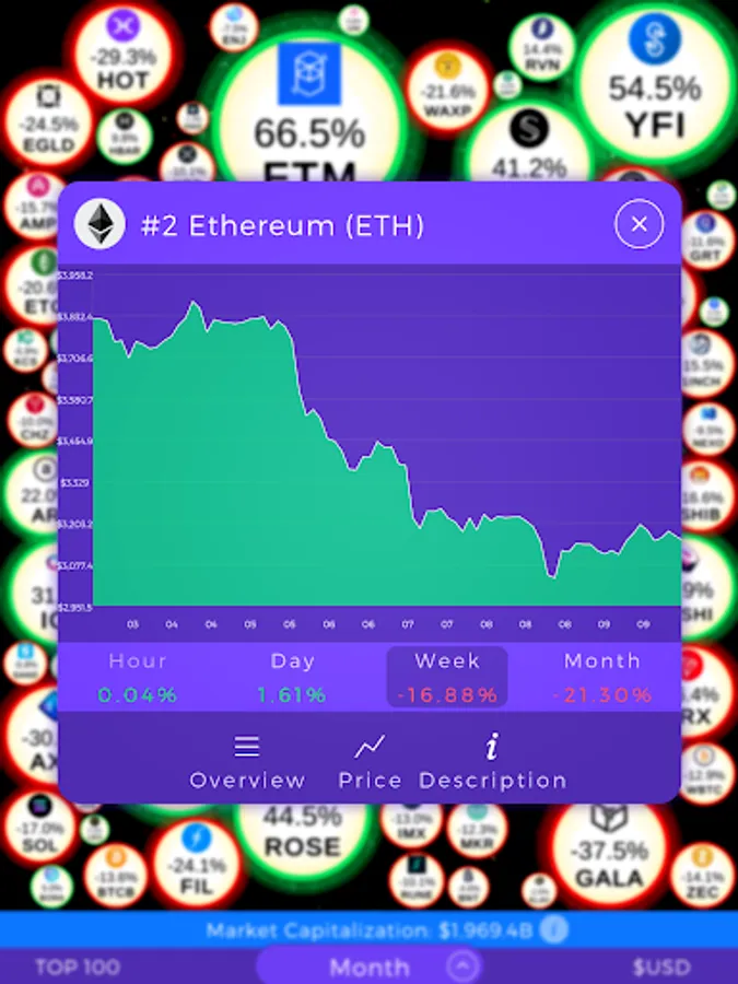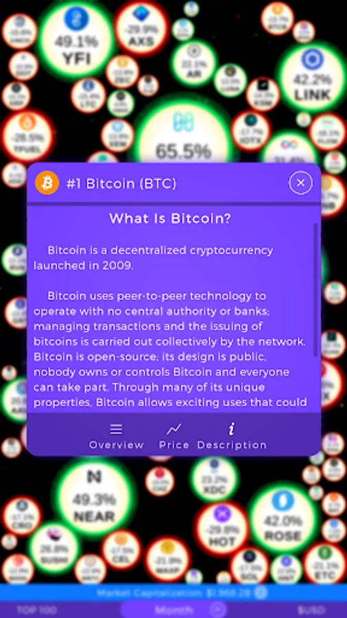 • Follow crypto trends with hourly, daily, weekly and monthly trading price change for all crypto bubbles