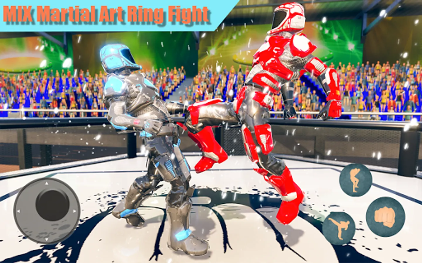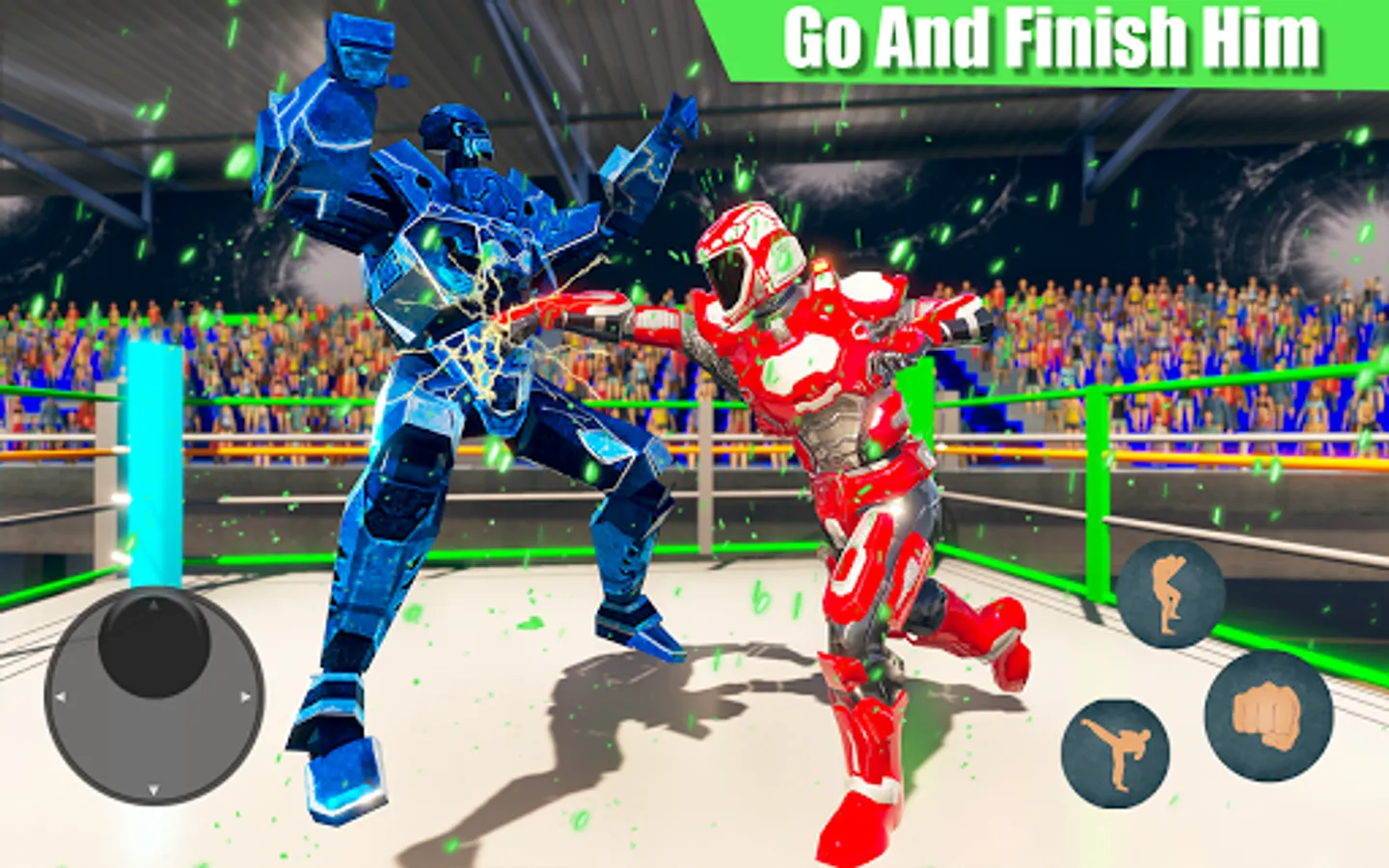 In this robot ring fighting club 2019 - wrestling game you will experience and perform the extreme professional sports game moves like karate, muay Thai, wrestling, judo, boxing, aikido, and the other fighting forms show your rage to the opponent and give him a defeat with the points or knockout in this steel ring robot fighting game you can get the fighting lessons for your club fighting and you can become the winner of fighting championship. This time you will fight in the fighting ring unarmed with your punches and kicks and combos. In this robot battle game, you will enjoy the real boxing experience with robots. In this robot ring fighting game, you will also block kicks and punches learn amazing skills to block the enemy attack because blocking is an essential part of martial arts. Enter and fight with the enemy face to face fight in the ring.