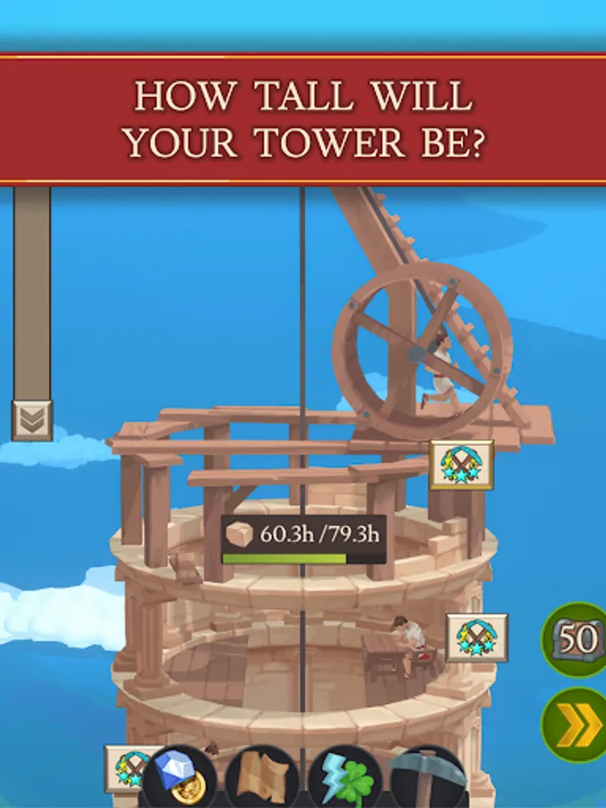 ☆ Lots of workers to manage in this tiny tower crafting and building and idle building games.