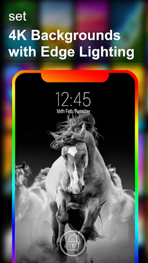 ✨ Set Edge Lighting with 4K Backgrounds - Choose from so many 4K Background options which you can set along with the edge light live wallpaper of your choice. You can also set your own photo with border light live wallpaper on your mobile home screen and lock screen. With Background Presets you get a ready to use stunning combination of a great 4K background and edge color matching to the background. Check the great collection in the app now!