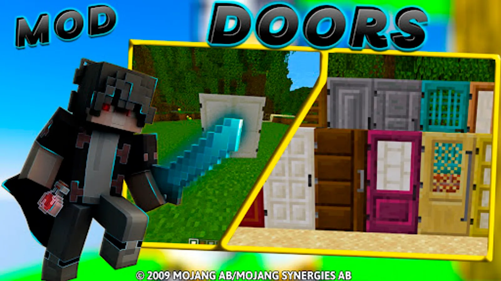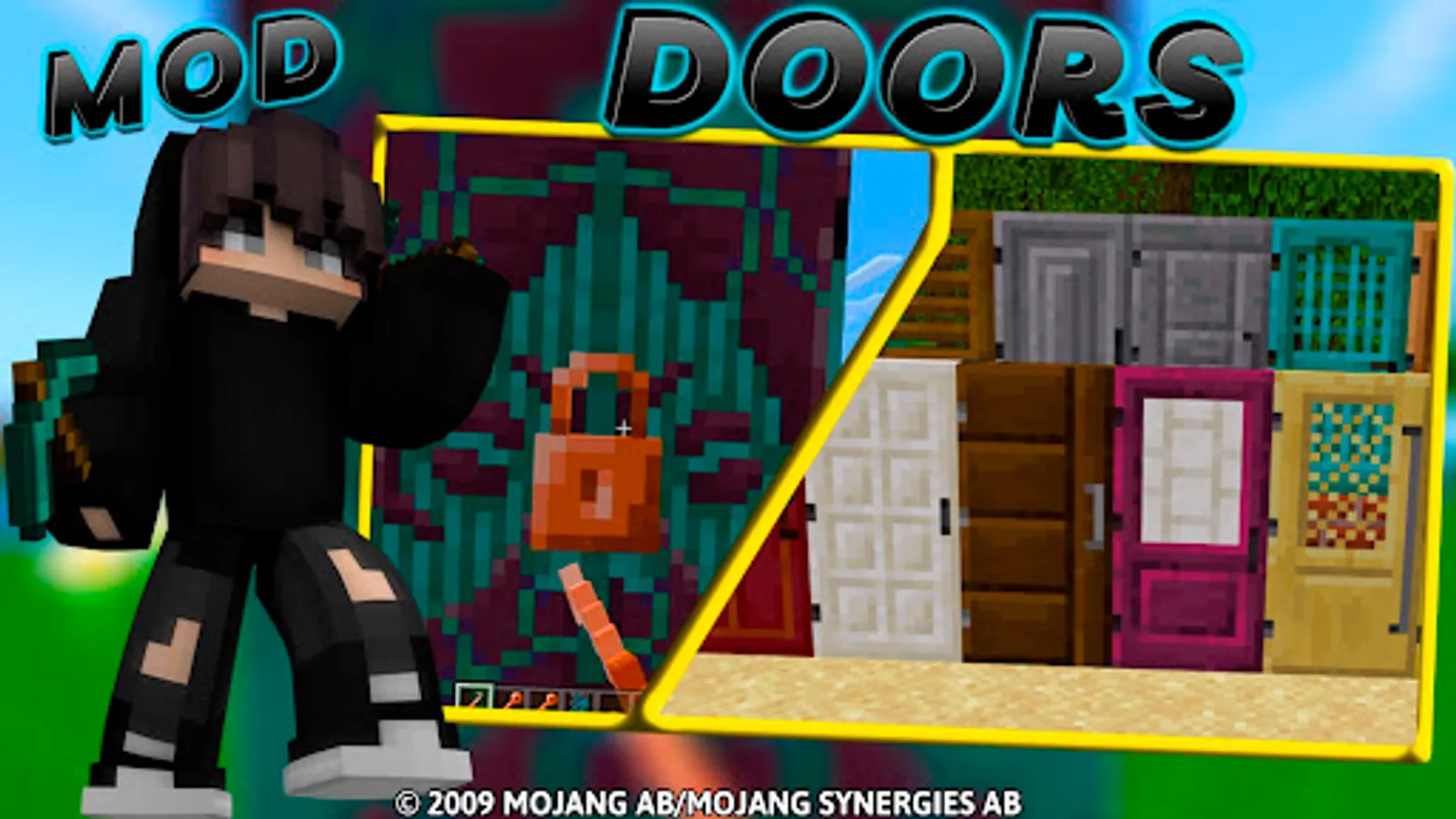 In total, Doors: Minecraft PE Mods provides players with an easy and fun way to personalize their Minecraft pe blocks game experience with new skins, add-ons and maps, and also allows you to play a multiplayer game with your mcpe friends. Have fun!
