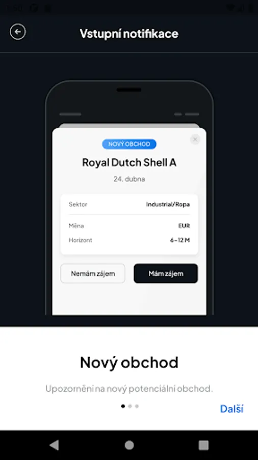 Notifications- With notifications in the application you will not miss any interesting tip. As soon as we think that this is the right time to enter the investment, we will inform all active users at the same time with a report with the details and parameters of the potential trade.