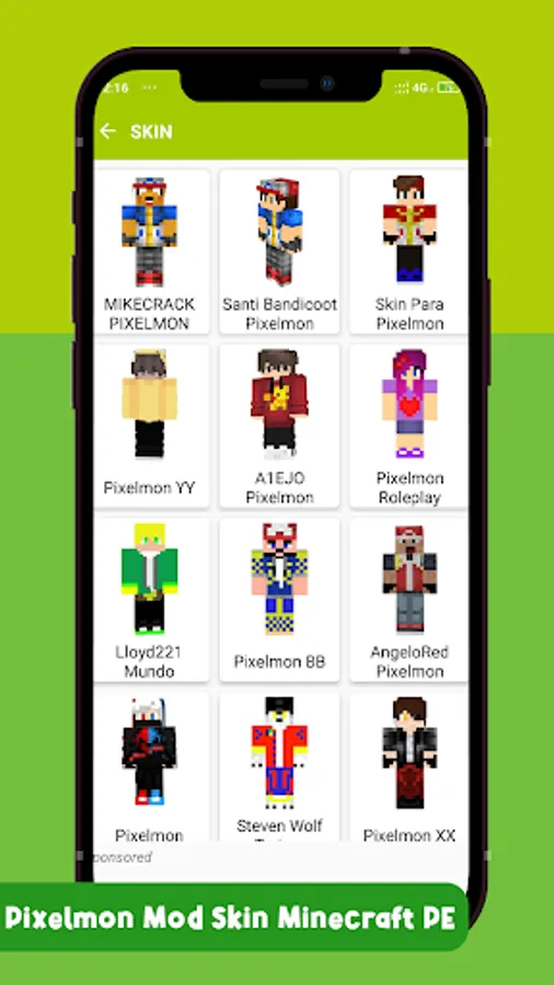 Pixelmon Mod Skin Minecraft PE is super skin minecraft collection, you can easily browse your favorite character and install in one click!