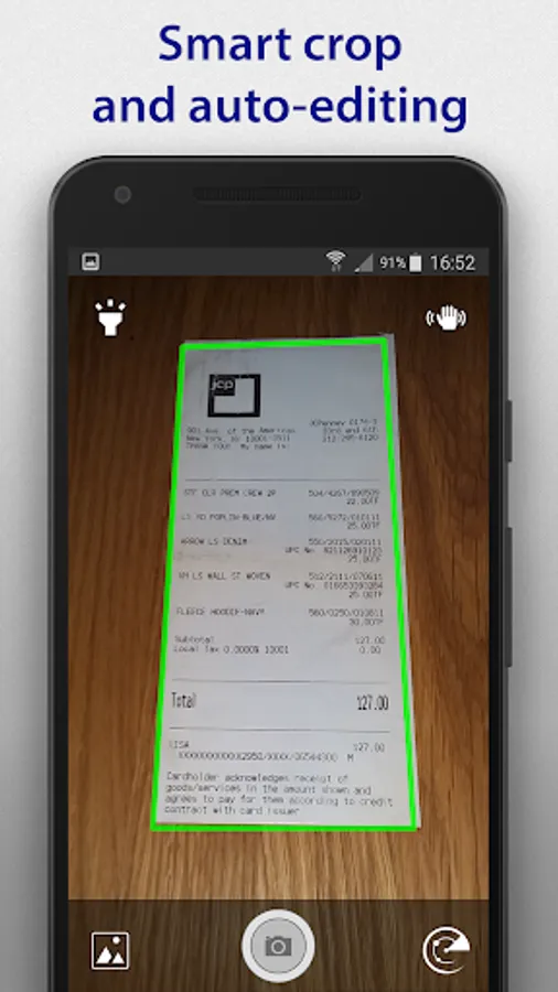 Fully automatic search document borders, cropping and perspective distortion correction without the need for manual editing. Manual override is available for fine-tuning.