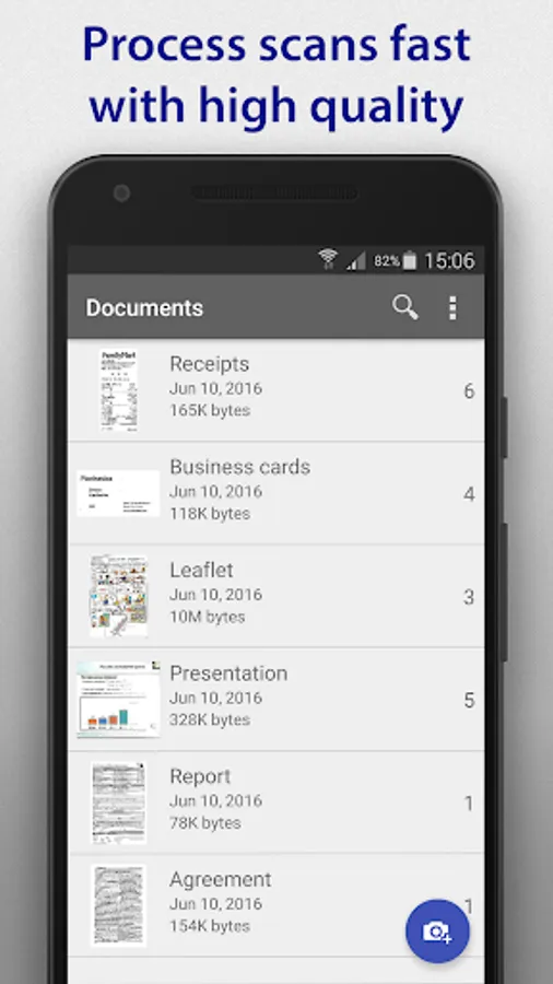 The perfect combination of speed and quality of image processing means that your document is available in as little as 3 seconds after shooting, and most importantly it happens without tedious manual adjustments