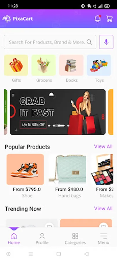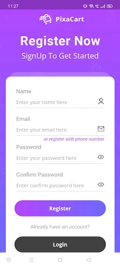 PixaCart Flutter app is a lightweight app developed on Flutter technology, no matters which OS you are using, it will work fine on both Android and iOS. It is clean, elegant, fully structured, and user friendly. So enjoy the shopping with PixaCart at door steps.
