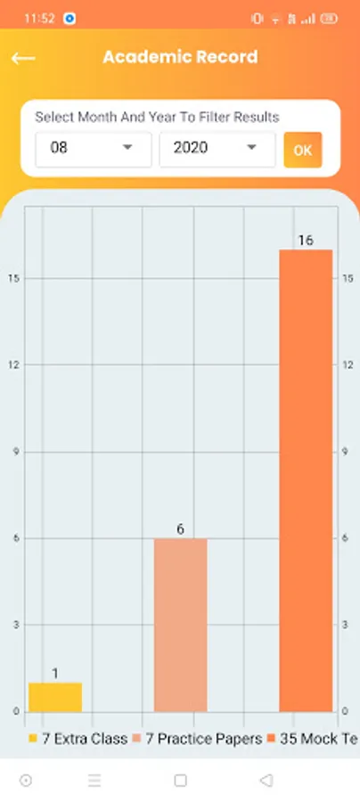 Progress reports charts (Academic record, Practice papers, Mock papers result).