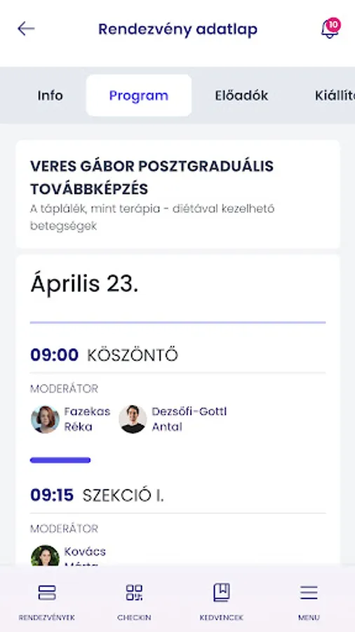 It provides a convenient overview of the program and application details for participants in the events of Ementin Kft. It is possible to evaluate the performances and log in with a QR code.