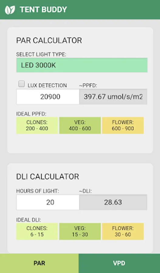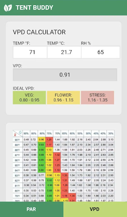 Tent Buddy also includes a very handy VPD calculator, which will help you get the most out of your tent!