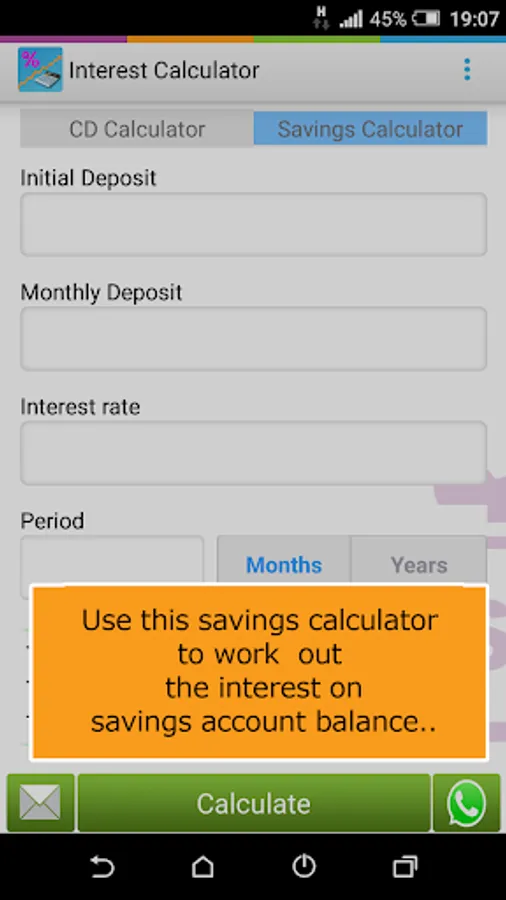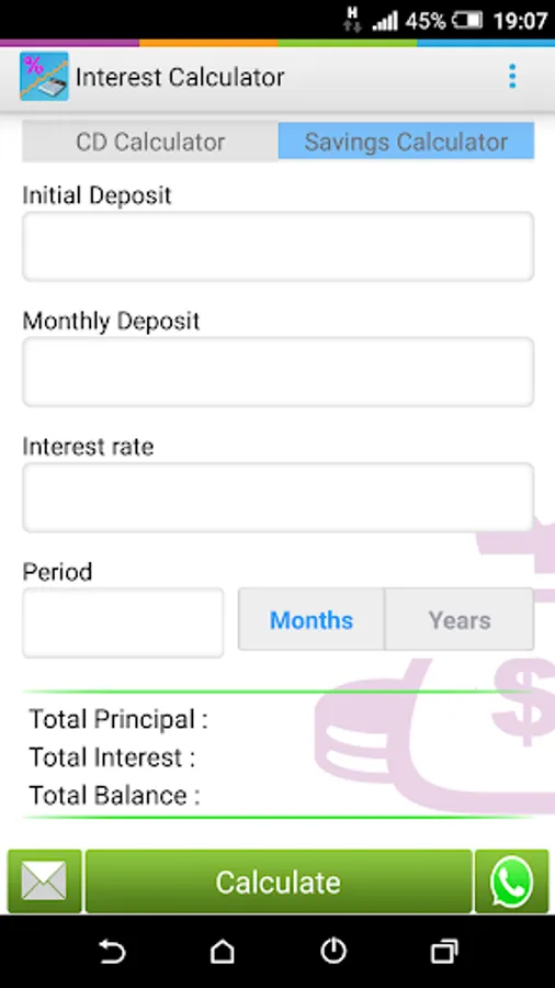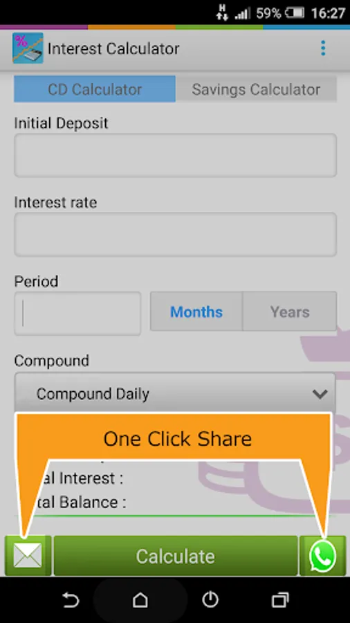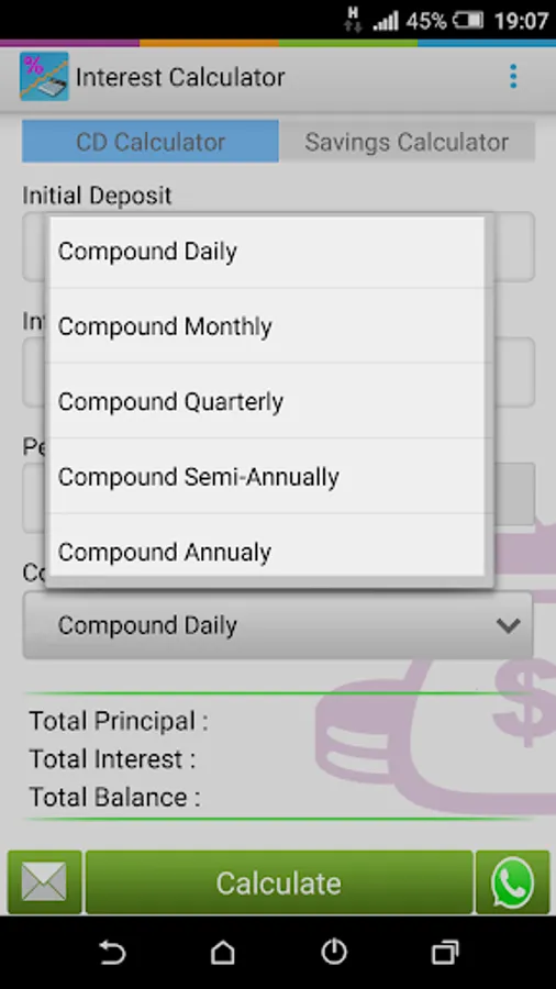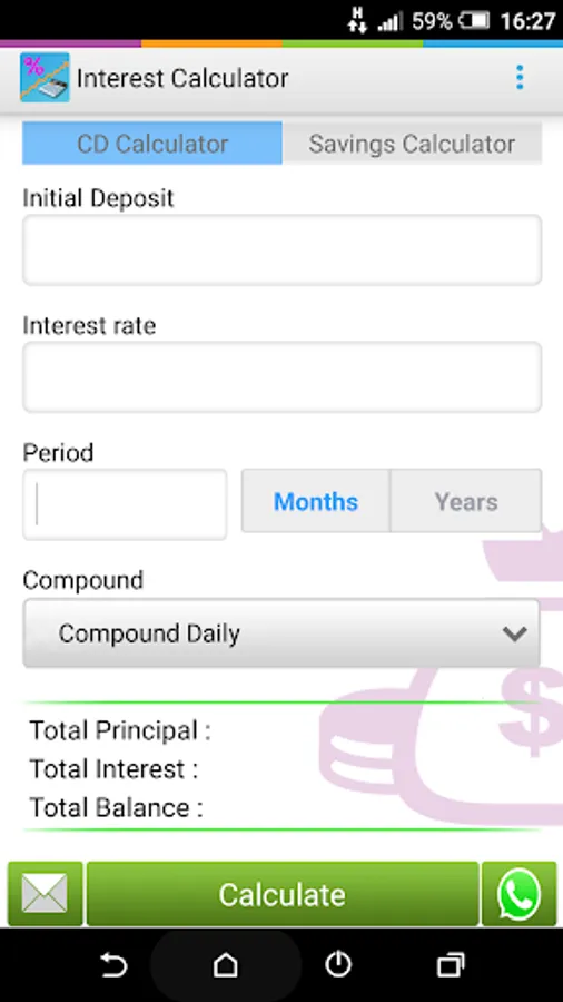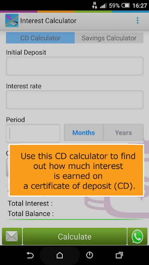 A financial calculator for calculating Certificate of deposit and Savings.