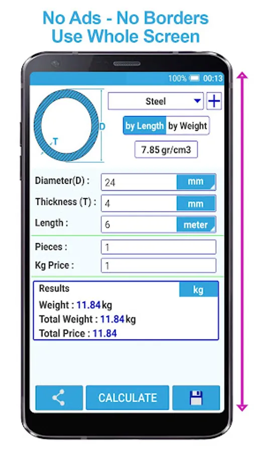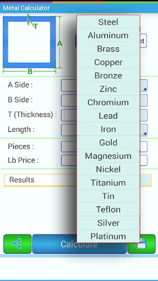Pro version of Metal Weight Calculator, No ads with theme support.