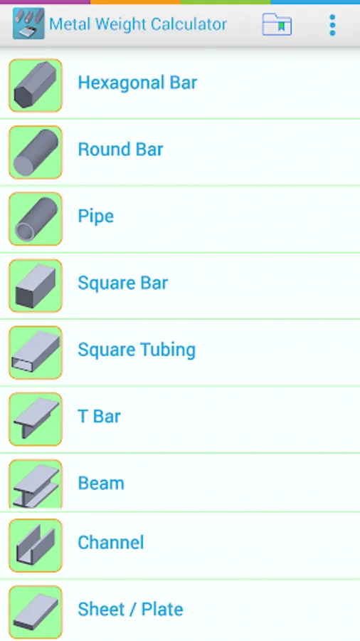 You can use this app for all known metal forms or Standards; like ; Round, Sheet, Tube, Rectangle, S beam , American standard, HP - American wide flange bearing piles, C - American standard channels, HD - Wide flange columns, HP piles,