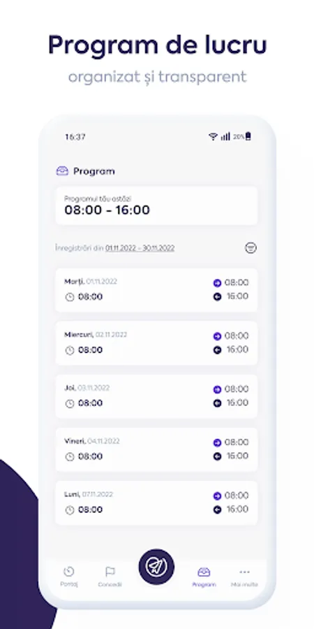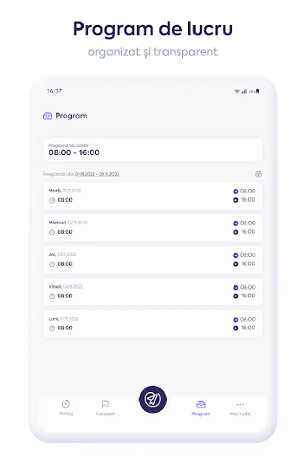 Work schedule module, with easy access to your schedule - set and check your schedule wherever you are;