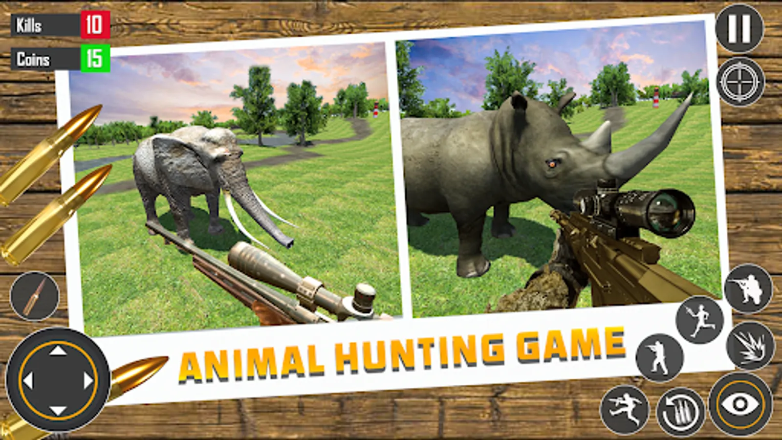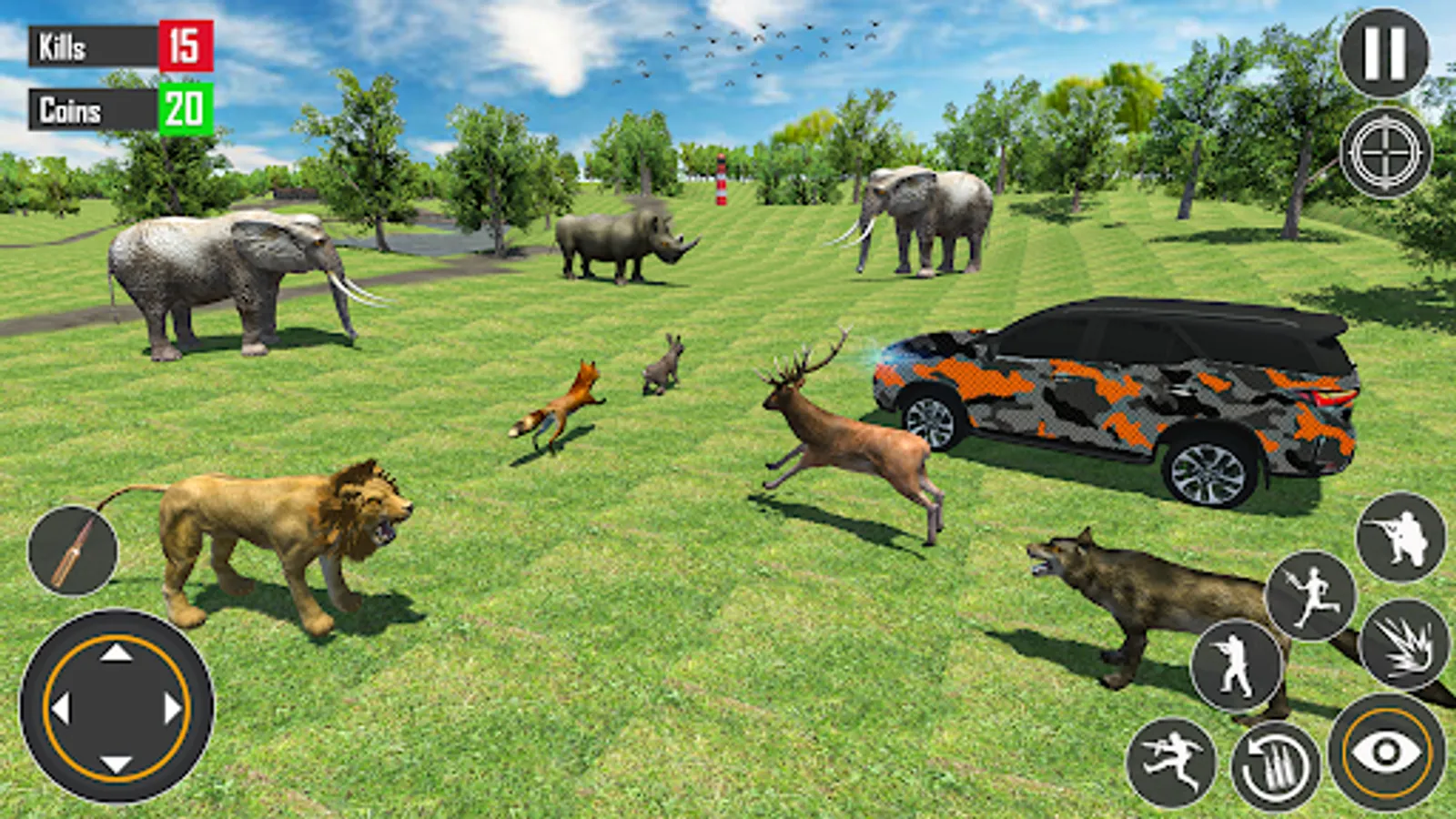 🦌Animal hunting games with car is free sniper game offline shooting simulator. Wild hunting simulator 3d is deer hunt sniper animal games. North america forest for deer hunting sniper needs real gears as wild hunting simulator 3d needs professionals. Safari hunting game where you have to collect animal rags and collect the trophy. Animal skin collected can be added to you home carpet in the game. Lets play wild animal hunting games with car to drive in the forest to reach the rhino and hunt him down.