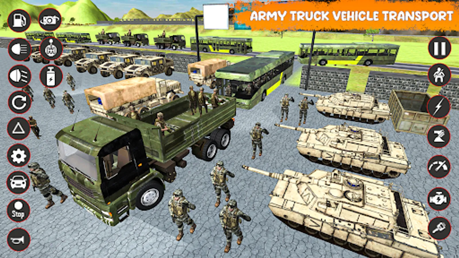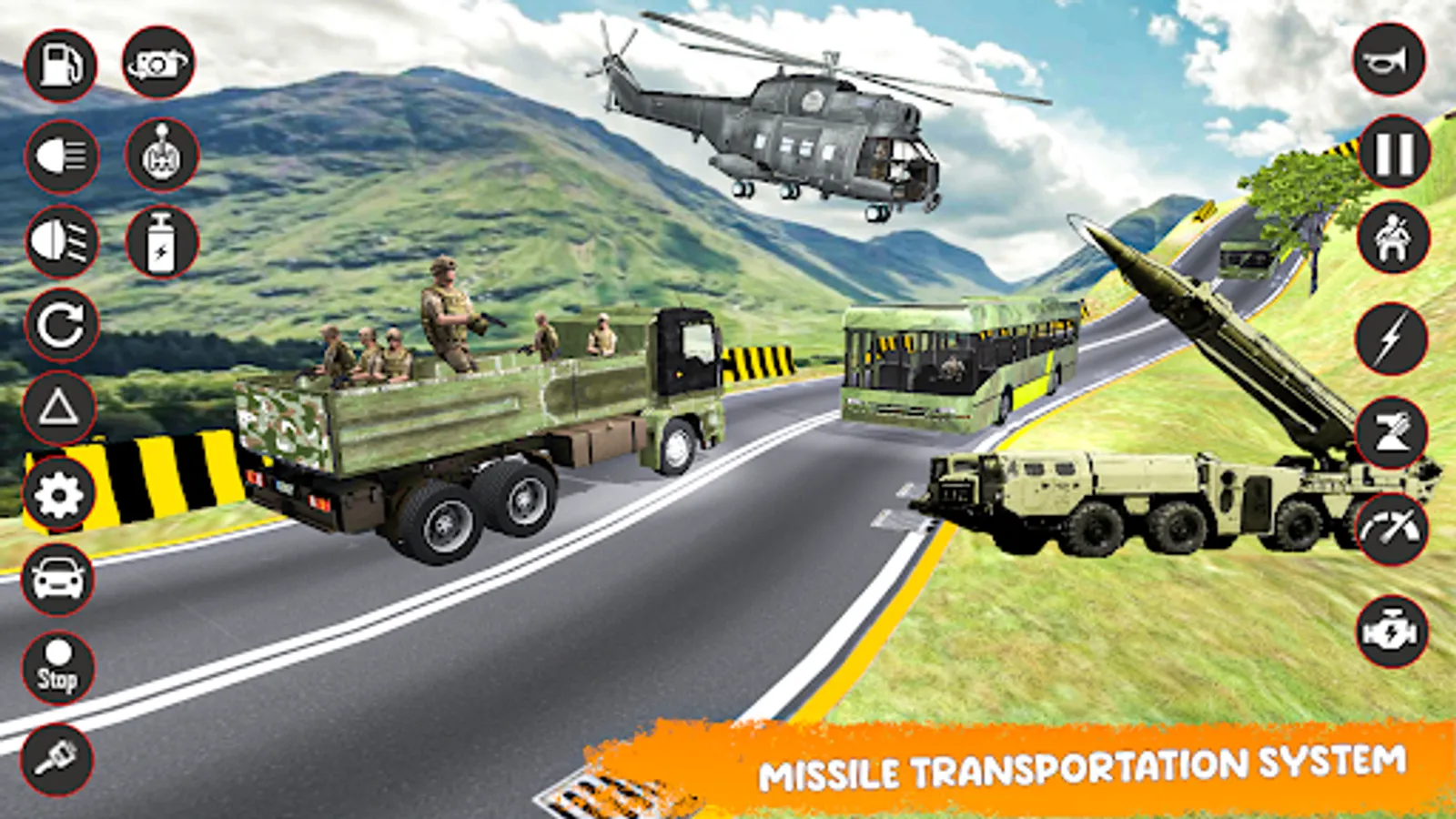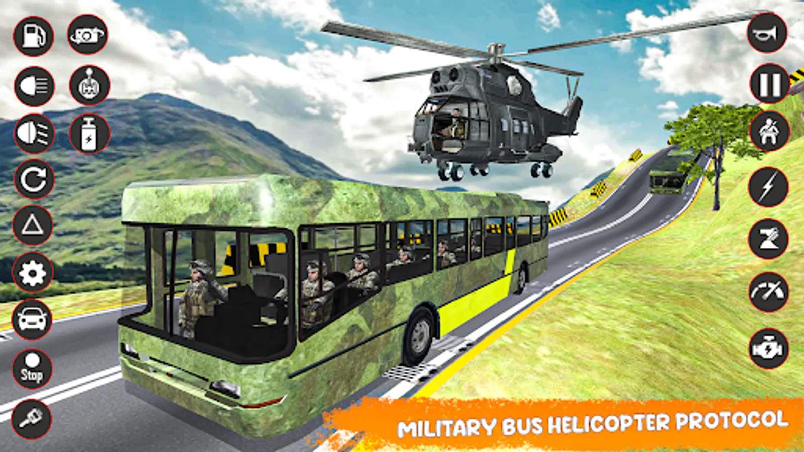 US Military truck 3D USA Army truck driving 2021 . military police protocol cars followed by helicopter to chase enemy target. Military bus helicoptor robot transformation added so vehicle can dodge into tunnels. Multi level fauji game army racing car to reach city military station. 3d army truck driving : bus games 3d is real long vehicle transport game. Rescue missions after war is over for Amercian soldiers reaching basestation. Missile transport game of truck in india is new offline game sensation. British Army bus game for soldiers to transport to hometown on holidays with timemode levels.