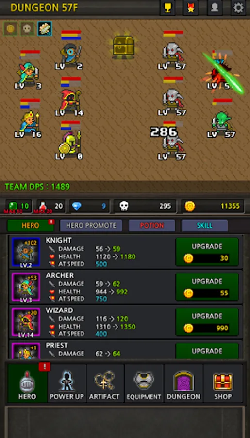 Together with the warriors of Pixel World, they hunt the monsters of the dungeon and collect gold