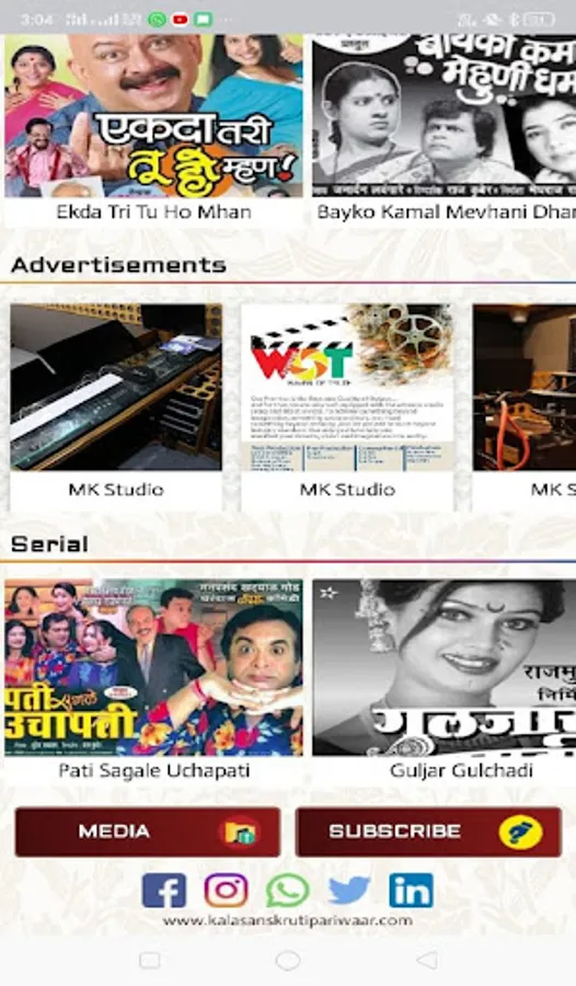 Kalasanskruti Pariwaar is a budding organization established in 2015 with purpose to extend help to backstage artists in Entertainment Industry. The important objective of this pariwaar is to identify the efforts of these individuals who work behind camera to turn vision into reality. The sole motto is to support artists from all form of art and music fraternity.
