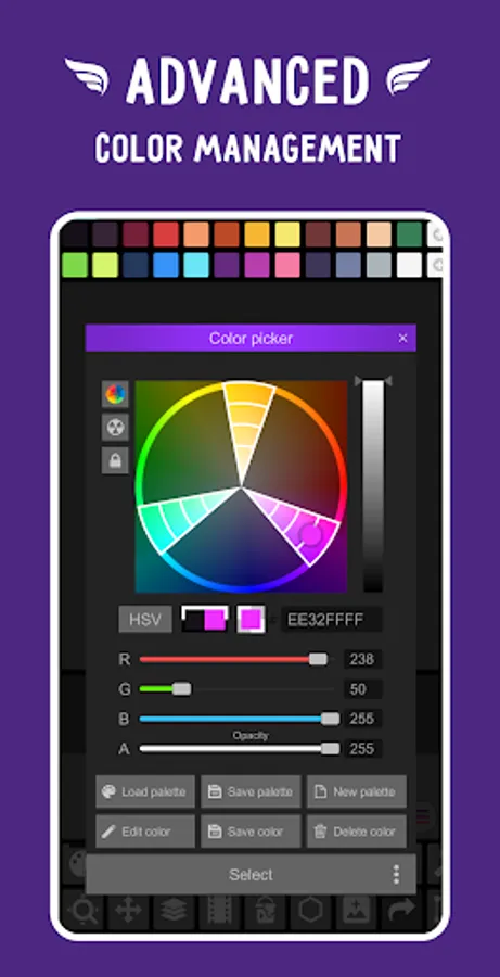 • Unlimited color adjustment (Hue, Saturation, Lightness)