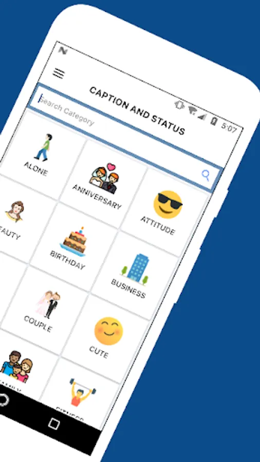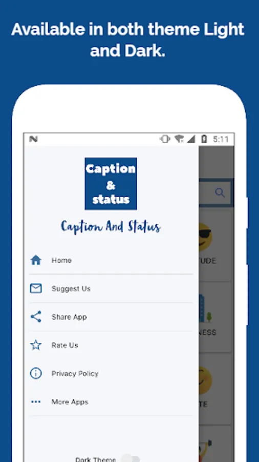 Quotes, status texts and caption are available in English with Emojis (Emoji caption / status).