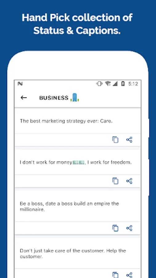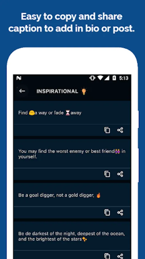 Share favorite caption, status and quotes with your loved ones or you can copy and paste your favorite caption or status for your use.