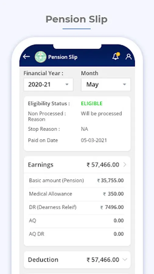 Pensioners can view details regarding the Pension check including details such as the breakdowns of the regular Deductions and Earnings.