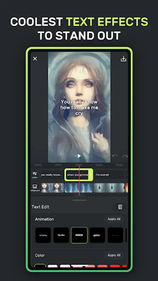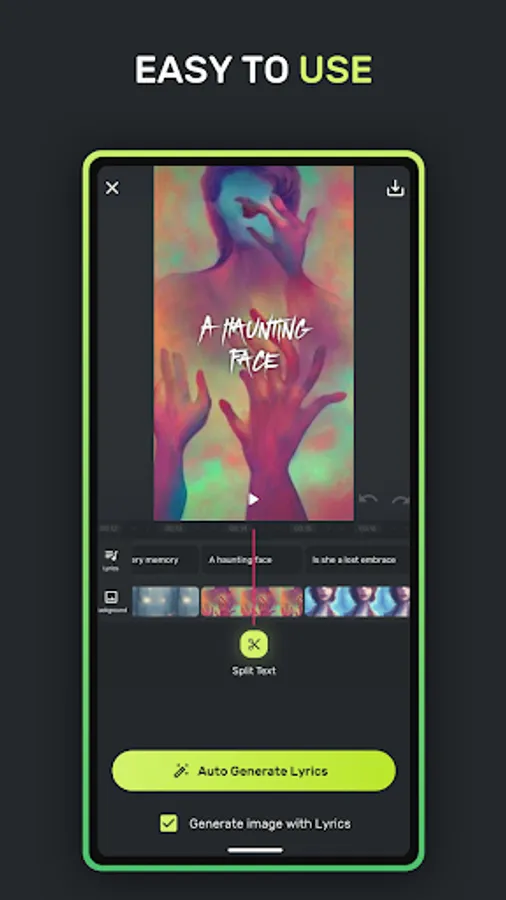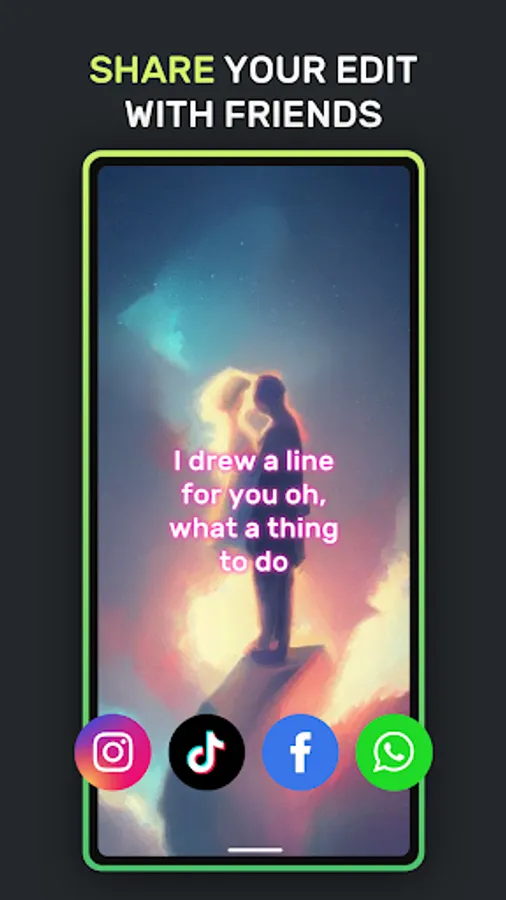 With Lyricle AI Lyrics Video Maker, you don’t need to create the whole edit from scratch because you have the power of AI with you. You only need to select the image you like out of hundreds of AI generated images and add the lyrics and music. The rest is done by Lyricle and you have a unique looking lyrics edit! Share the edit on your social media and make your followers wonder how you got those editing skills.