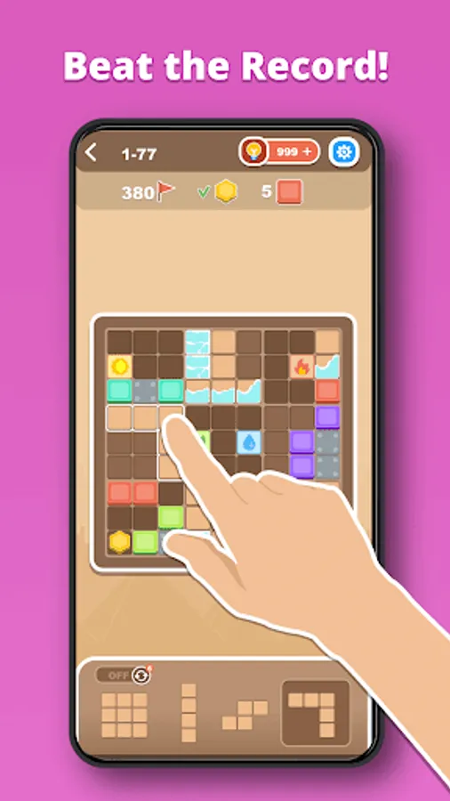 Wooden blocks puzzle - place wooden blocks on a 9x9 field and fill in rows, columns or squares to remove them from the game. Score points and pass the levels
