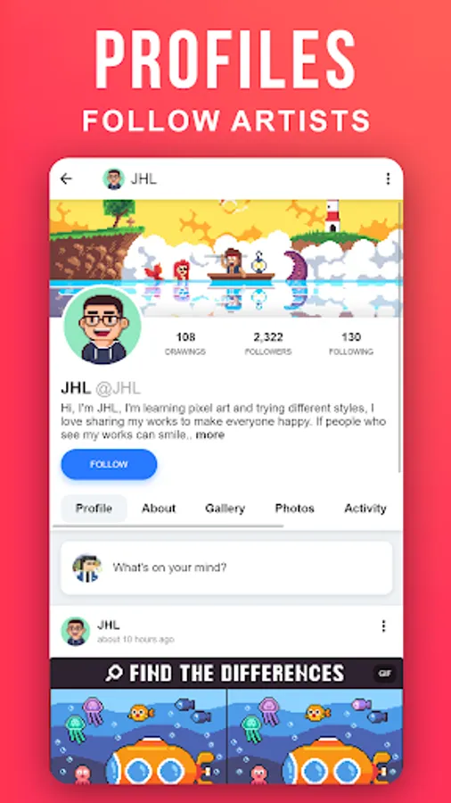 Become part of the largest pixel art community and understand why Pixilart is a growing community for feedback, sharing, art and more! It's fun and easy to create pixel art on the go with Pixilart. Simply move your finder across the screen to move the cursor and click on draw to lay pixels. Use blank canvases or choose from a variety of bases created by other users.
