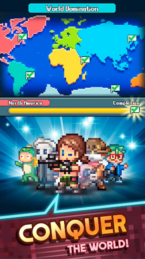 Recruit henchmen to your cause – from the legendary Big Bad Wolf to Foxx the Cyborg, each character has their own unique skills to help your quest to become an evil titan. Upgrade your henchmen to improve their success rate in trades, intel gathering rate and combat skills.