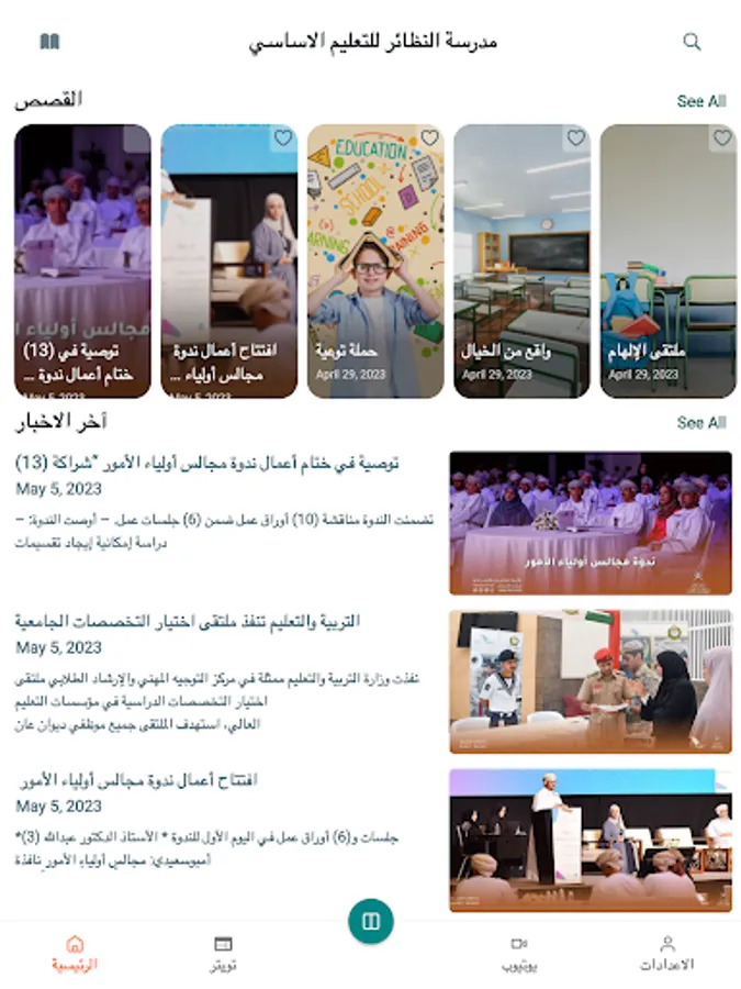 Al-Nazaer School application is the official application for basic education that aims to provide the latest news and school events for students and parents. Users can view upcoming school events and events organized by the school, and can access contact information for the school and teachers. The app is easy to use and works smoothly on all smart devices. Download the app now to take advantage of all that Al-Nazaer School has to offer!