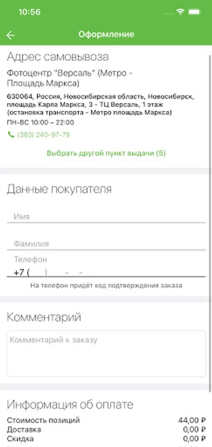 Thanks to the laconic management, the ordering algorithm is very clear and simple. It includes just a few simple steps. It is enough to make a choice of service and order details, go through a short registration, select a pick-up point and pay for the order online. All points of delivery are located along the metro line, but when ordering through the application, it is also possible to arrange delivery in Novosibirsk.