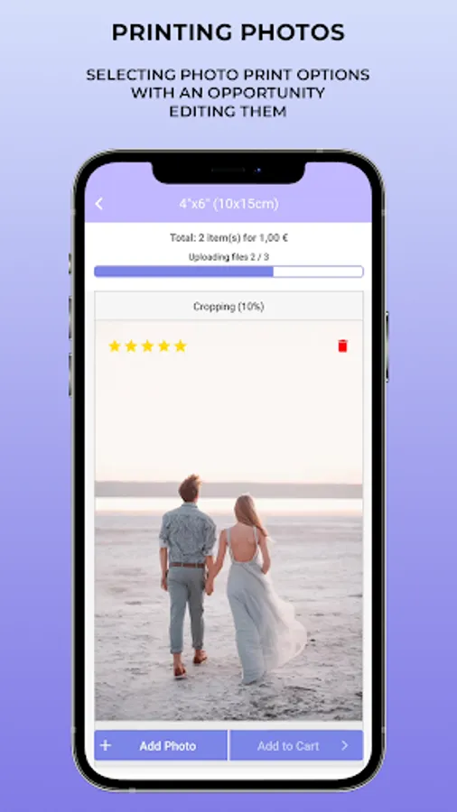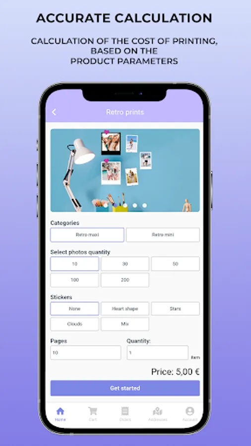 If you want to place an order, firstly, you need to pick a category and service, then upload photos, images, or files and add your comment, authorize via the phone number. All orders posted with courier service or can be collected at our store. Now we are ready to process your order! We will notify you about its arrival in our app.