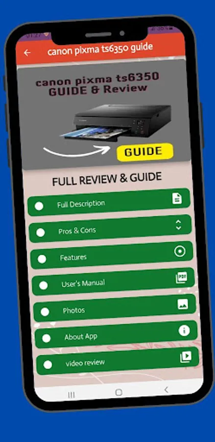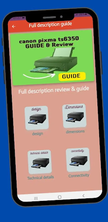 Through the canon pixma ts6350 printer guide application, you can review all the features, specifications, parameters and questions about the canon pixma ts6350 easily through the application, knowing what you are wondering about the Canon Pixma Inkjet printer.