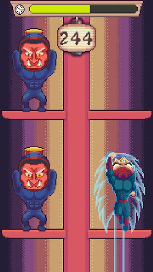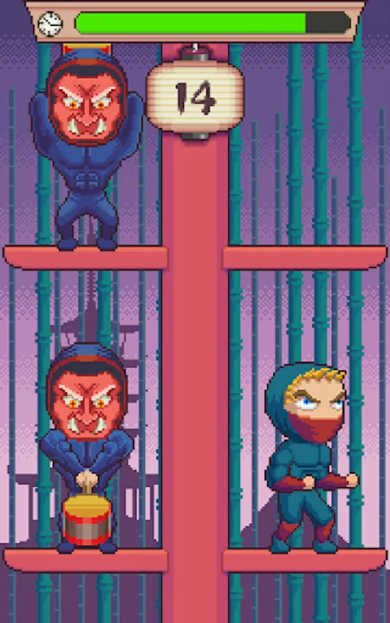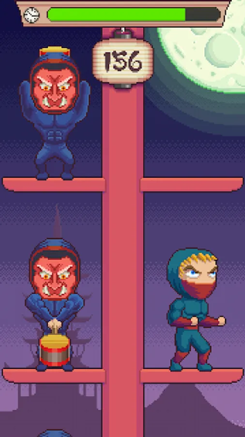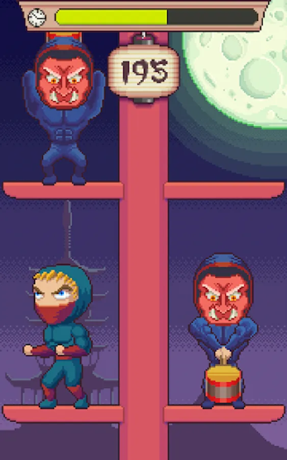 Night in Japan. Full moon. A new ninja has to climb the ninja tower as high as he can, avoiding the hitting hammers of the master ninjas.