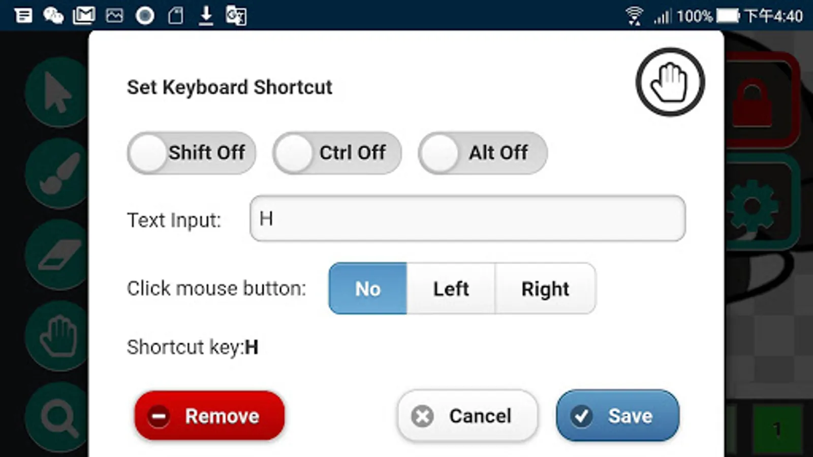 At the same time, it also provides 5 sets of independent buttons and can control Windows toolbar. It's function let you control drawing tool (ex. pen, eraser, paint...).It's very convenient.