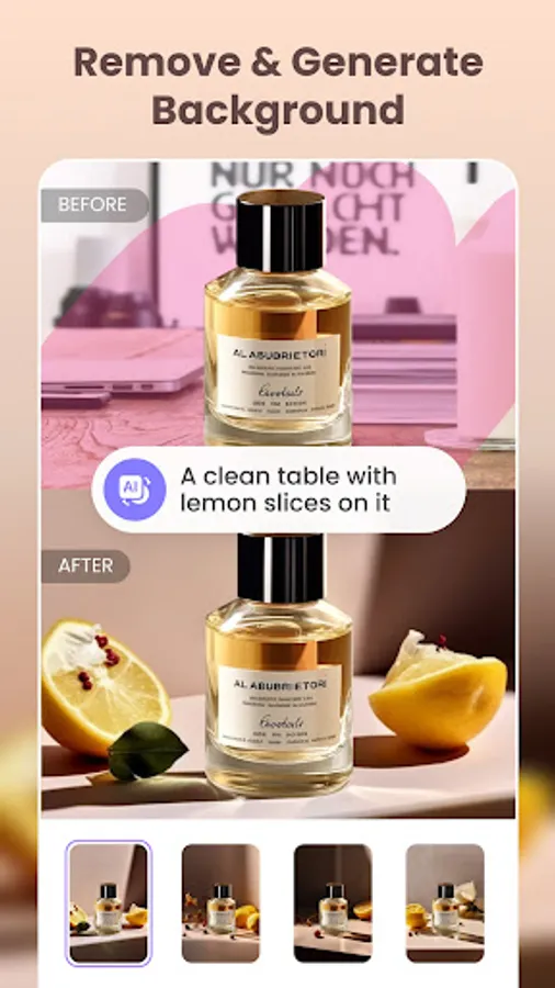 Generate Background: write a description for the AI generator to create your desired photo background.