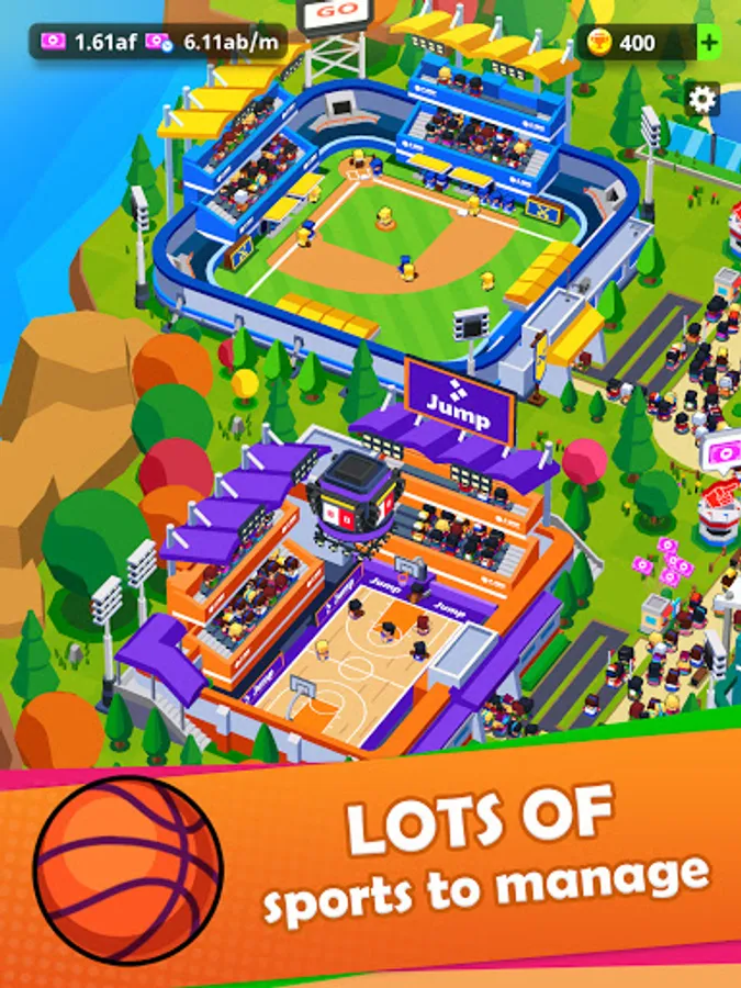 Start with a small stadium, get visitors into the town, and sell tickets to earn money to build even more stadiums! Manage and optimize resources like a sports management simulator and improve the games bringing more players to the field! You will manage a tennis court, a swimming pool, a car racing track, a soccer field, a football pitch, a basketball court, a golf course, a boxing ring, and build stadiums for all other cool national sports of the world!