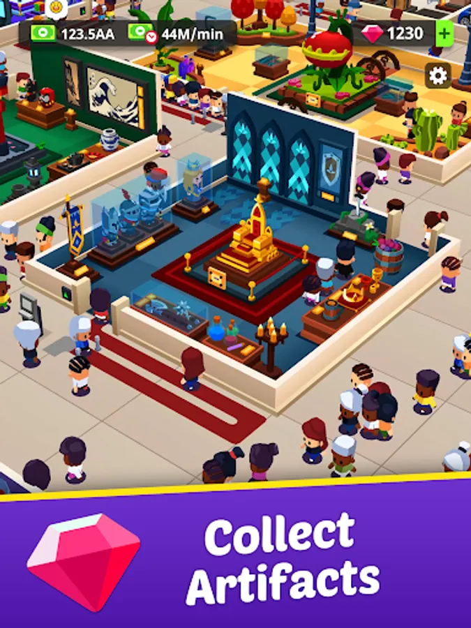 Manage and optimize resources like a business management simulator game and build now your art empire! Start with a small gallery, get visitors into the Museum, sell tickets to earn money, invest your earnings to buy new sets of cool art collections, and build more themed galleries!