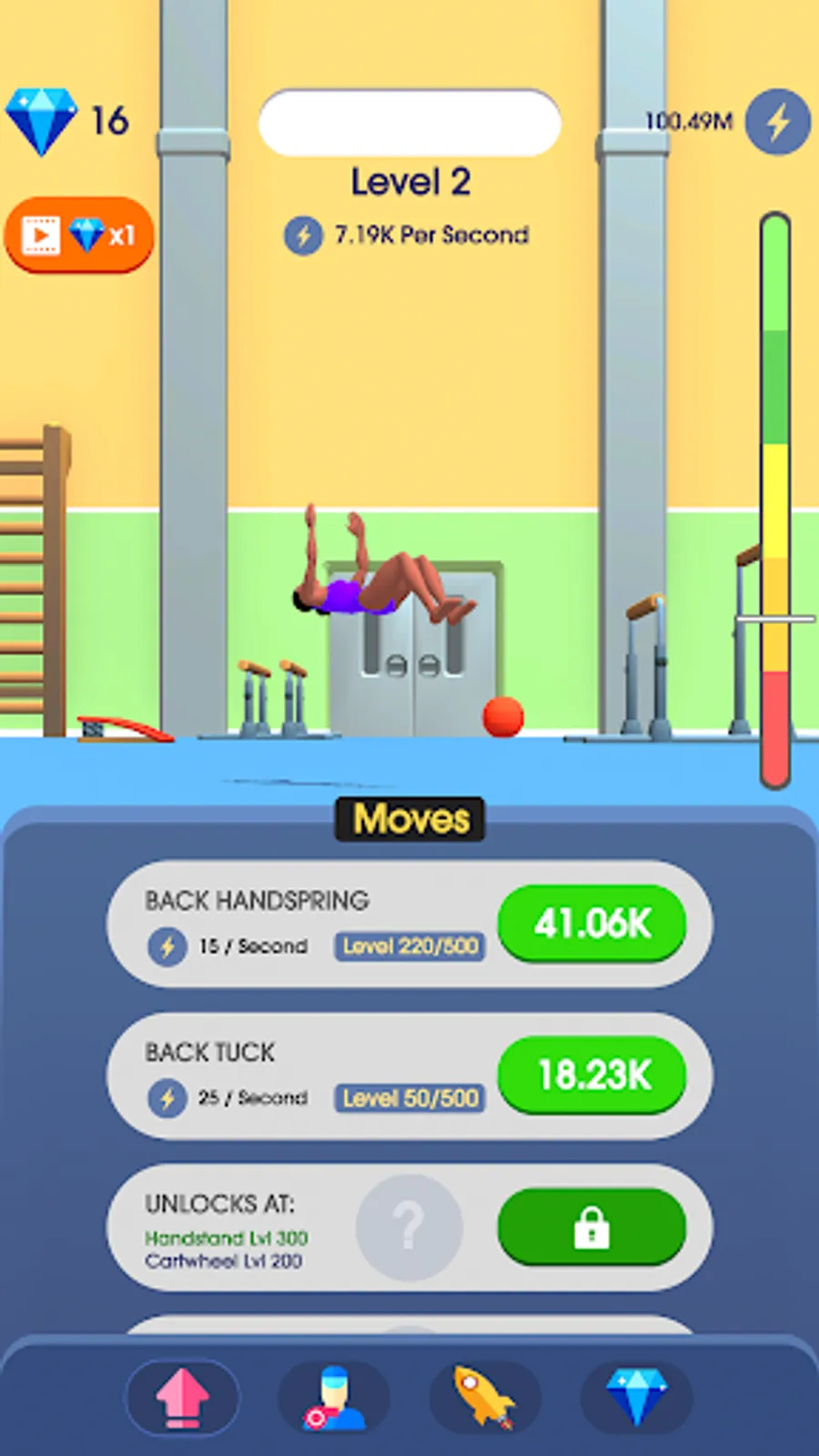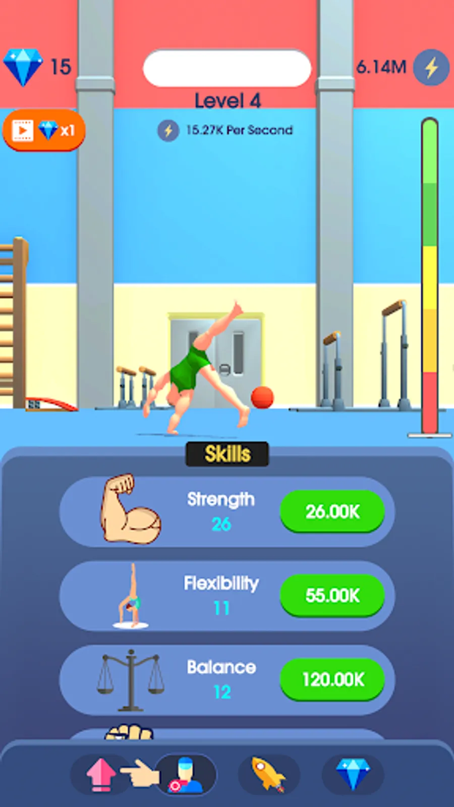 Idle Gymnastics is an idle simulation game based on gymnastics floor routines. You will learn moves in the same order you would progress in real life. Earn experience while you're away, compete in tournaments and level up your skills as you make your way to become an Olympic Gymnast!