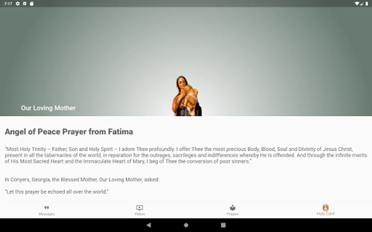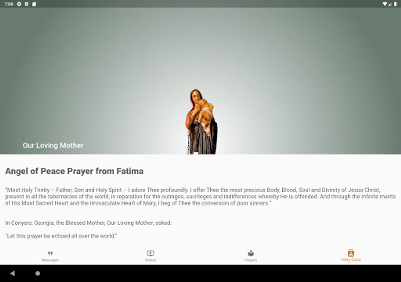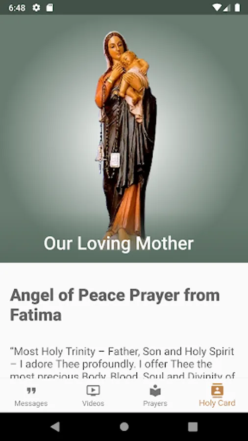 • Holy Card - Picture of Our Loving Mother containing the Angel of Peace prayer.
