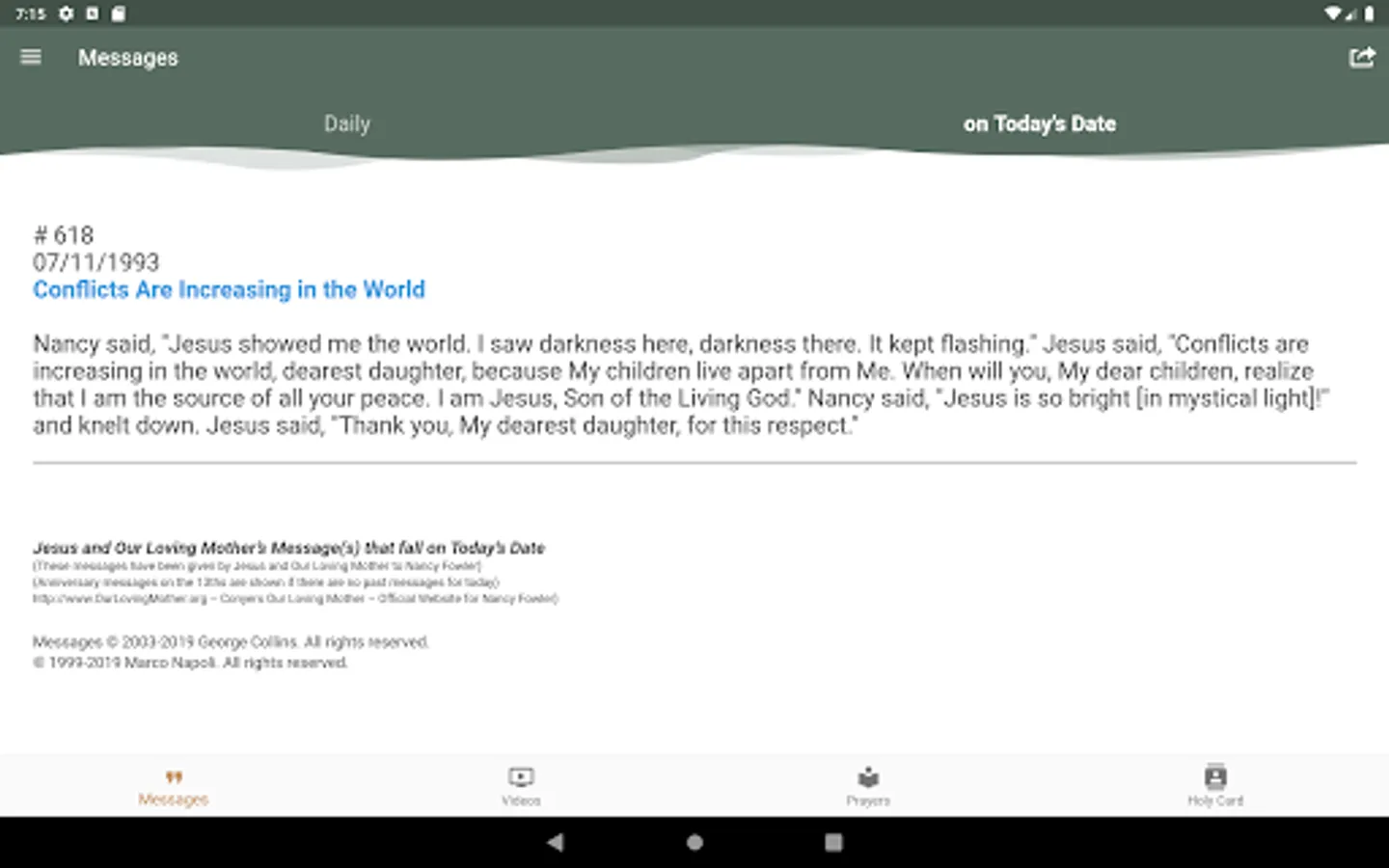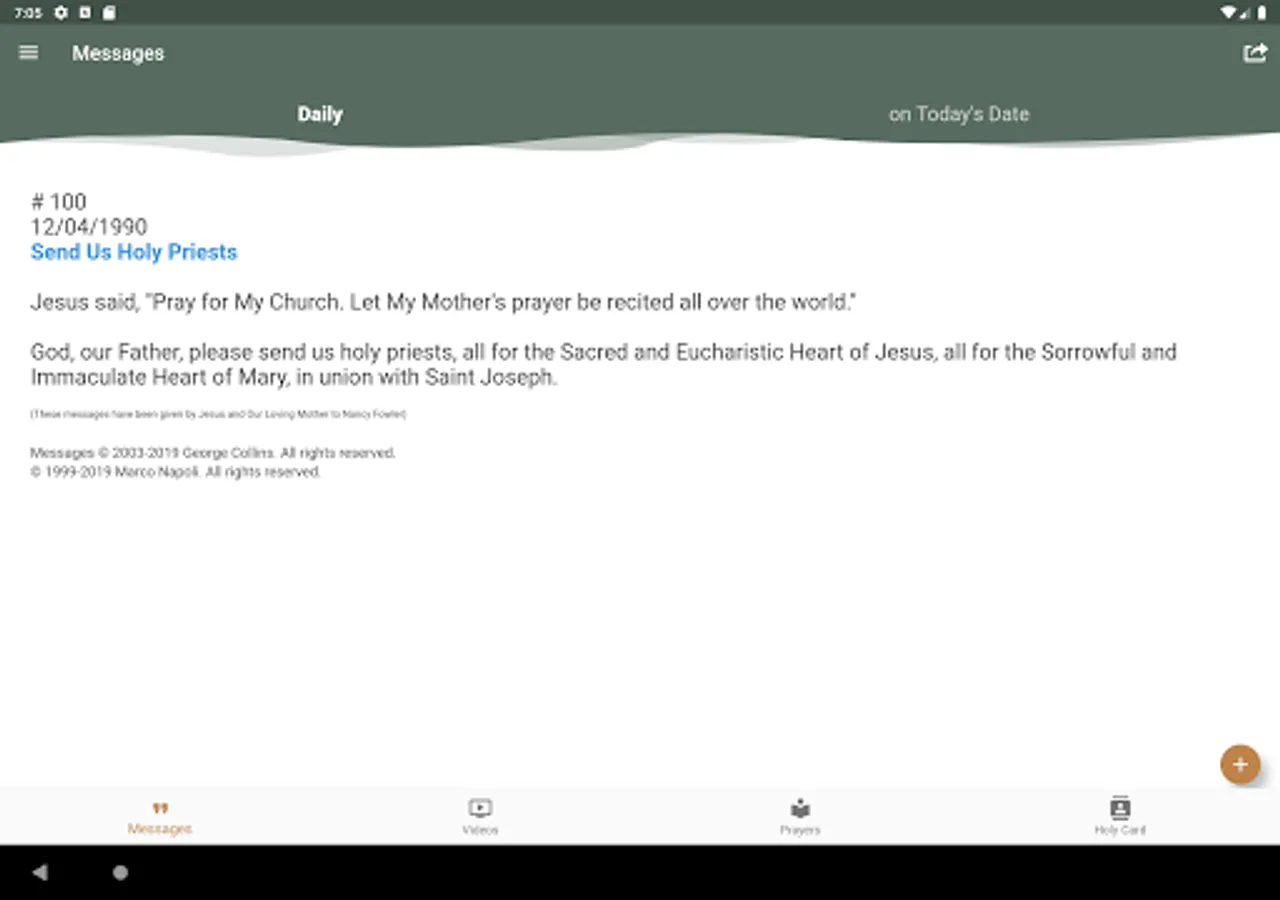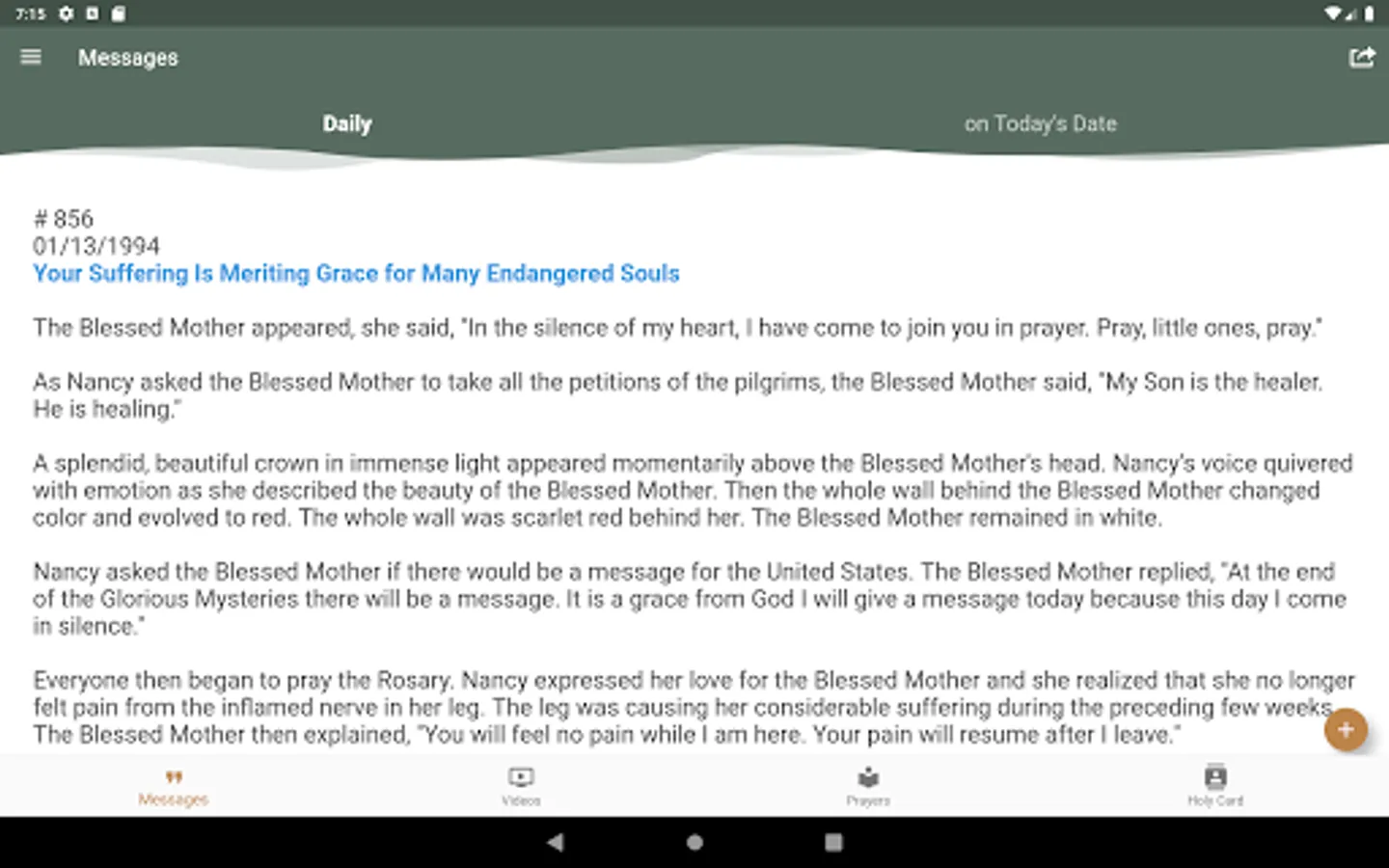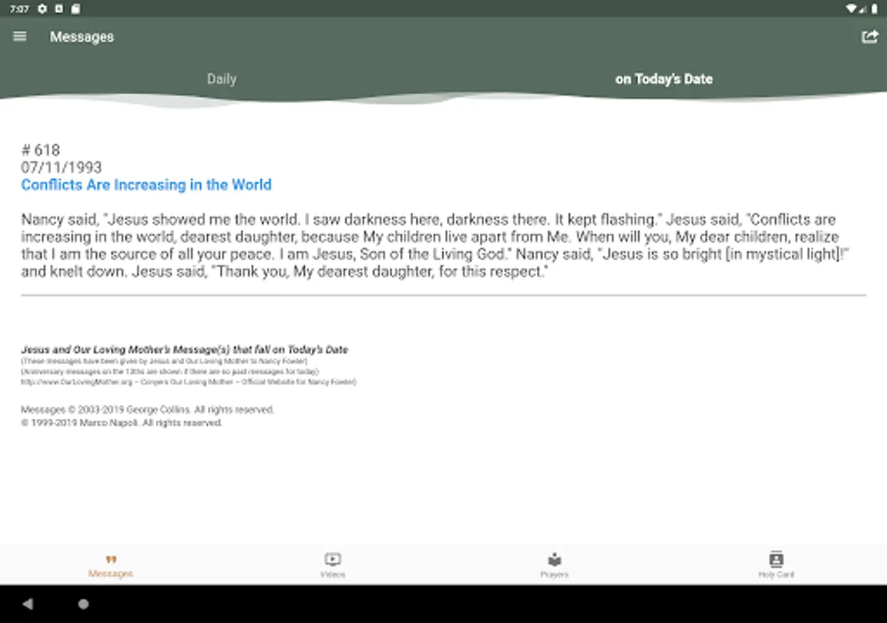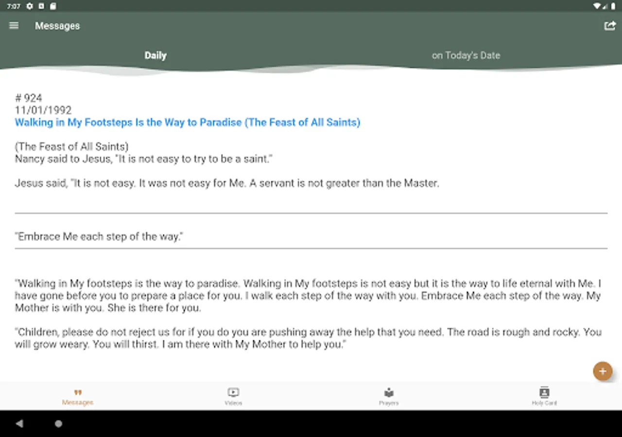 • Readings that fall on today's date - Anniversary messages on the 13ths are shown if there are no past messages for today.