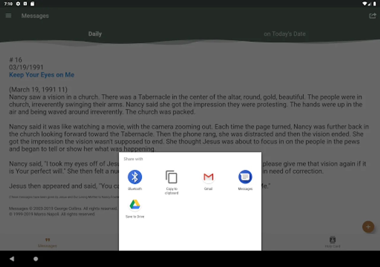 • Share daily reading through social media like Facebook, Twitter, Text Message, Mail and more...