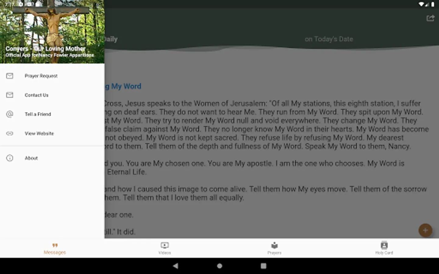 Nancy continued to be blessed with more and more mystical experiences. An Angel preceded the Blessed Mother (Our Loving Mother) visits to Nancy. Apparitions of the Blessed Mother occurred from 1990 to 1998. Presently she continues to be blessed with visions particularly during the Holy Mass.