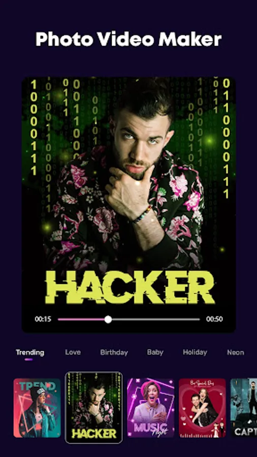 🎉 Trendy Templates: Choose from a wide range of professionally designed templates for your photo video creation.