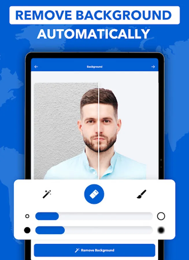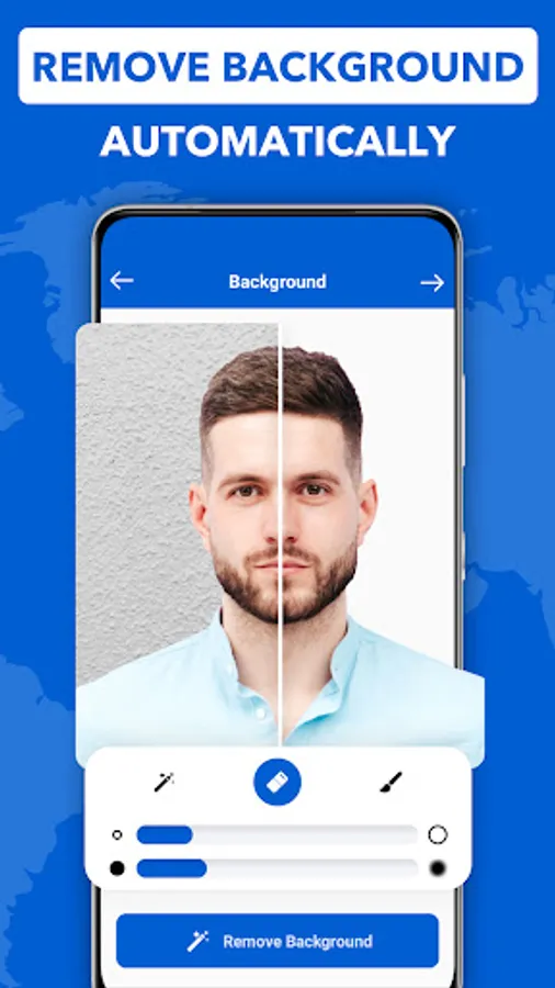 You can now efficiently and easily Share, Store, Print or email multiple Passport visa Photos editor (8 Passport Size photos). Get help from smart, AI-powered techniques with ica photo editor to help position your face to be able to capture the perfect picture. You also get access to a highly efficient and wonderful ica & Auto-Background remover tool which will help you remove any background disturbance just with the tap of a single button.